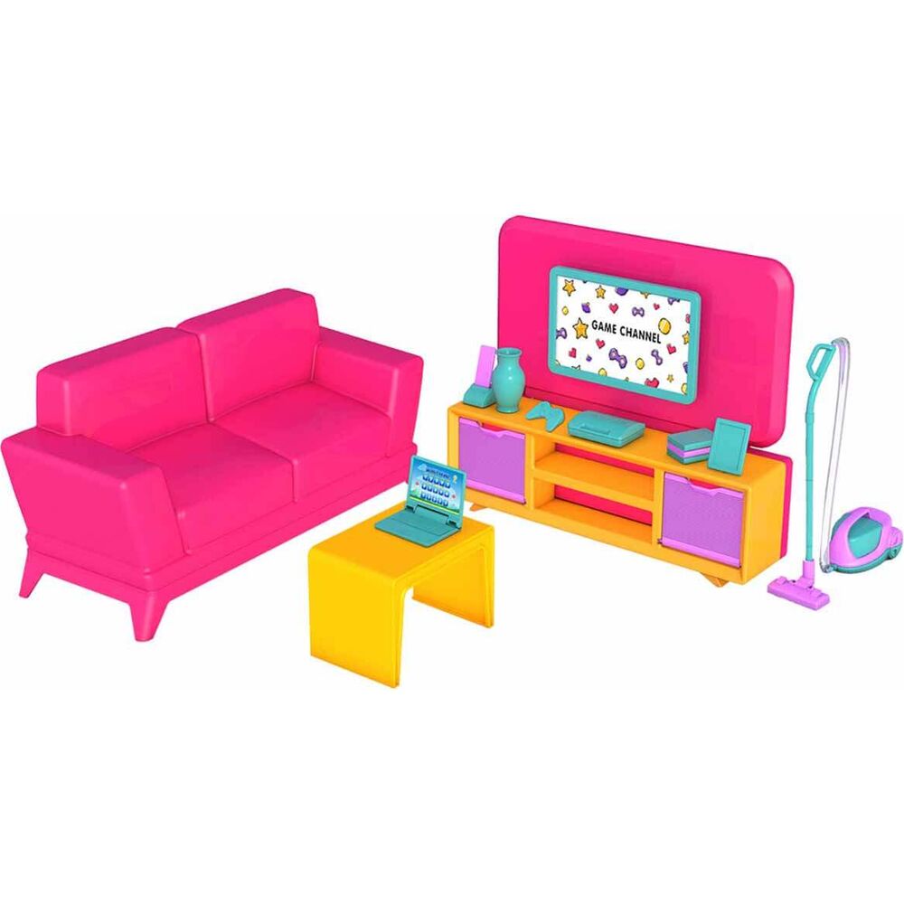 Her ayrıntısı düşünülmüş sevimli oturma odasında en güzel evcilik oyunlarını oynamaya hazır ol! Renkleri ve gerçekçi detayları ile dikkat çeken bu oyuncakta bir oturma odasında ihtiyaç duyacağın her şey var.