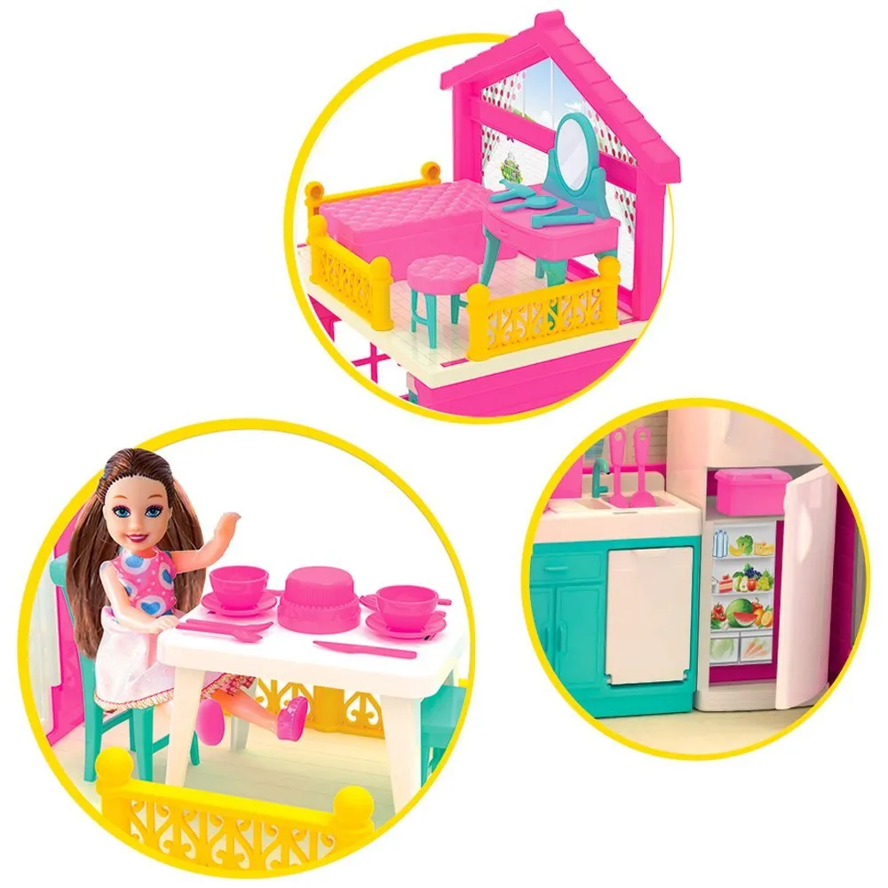 Evin renkli balkonu, mutfak takımı, televizyon ünitesi tıpkı gerçek gibi görünen bu ev ile çocuklar eğlenirken hayal güçlerini geliştirebilir ve el becerilerini güçlendirmelerine yardımcı olur.