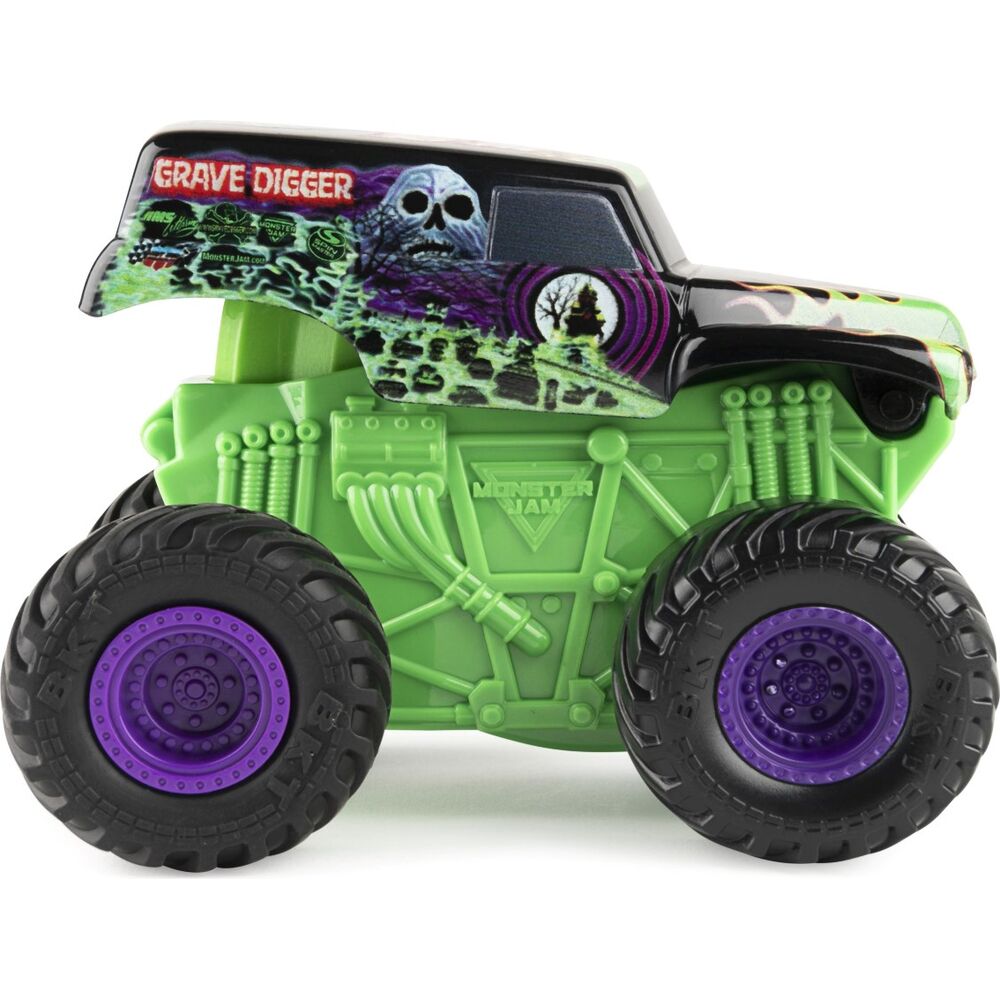 Bu 1:43 ölçekli resmi Monster Jam kamyonlarıyla canlı şovlarda gördüğünüz gibi harika önden taklalar atın! Kamyonunuzun gövdesini aşağı indirin ve gücünü serbest bırakmak için ileri doğru itin. Click & Flip Truck, çılgın bir aksiyon için öne doğru fırlıyor! Kamyonunuzu sıfırlayın ve tekrar tekrar çevirmeye devam edin - çok eğlenceli! Tonlarca ayrıntıya sahip bu üst düzey kamyonlar, en sevdiğiniz Monster Jam kamyonlarına hayat veriyor.