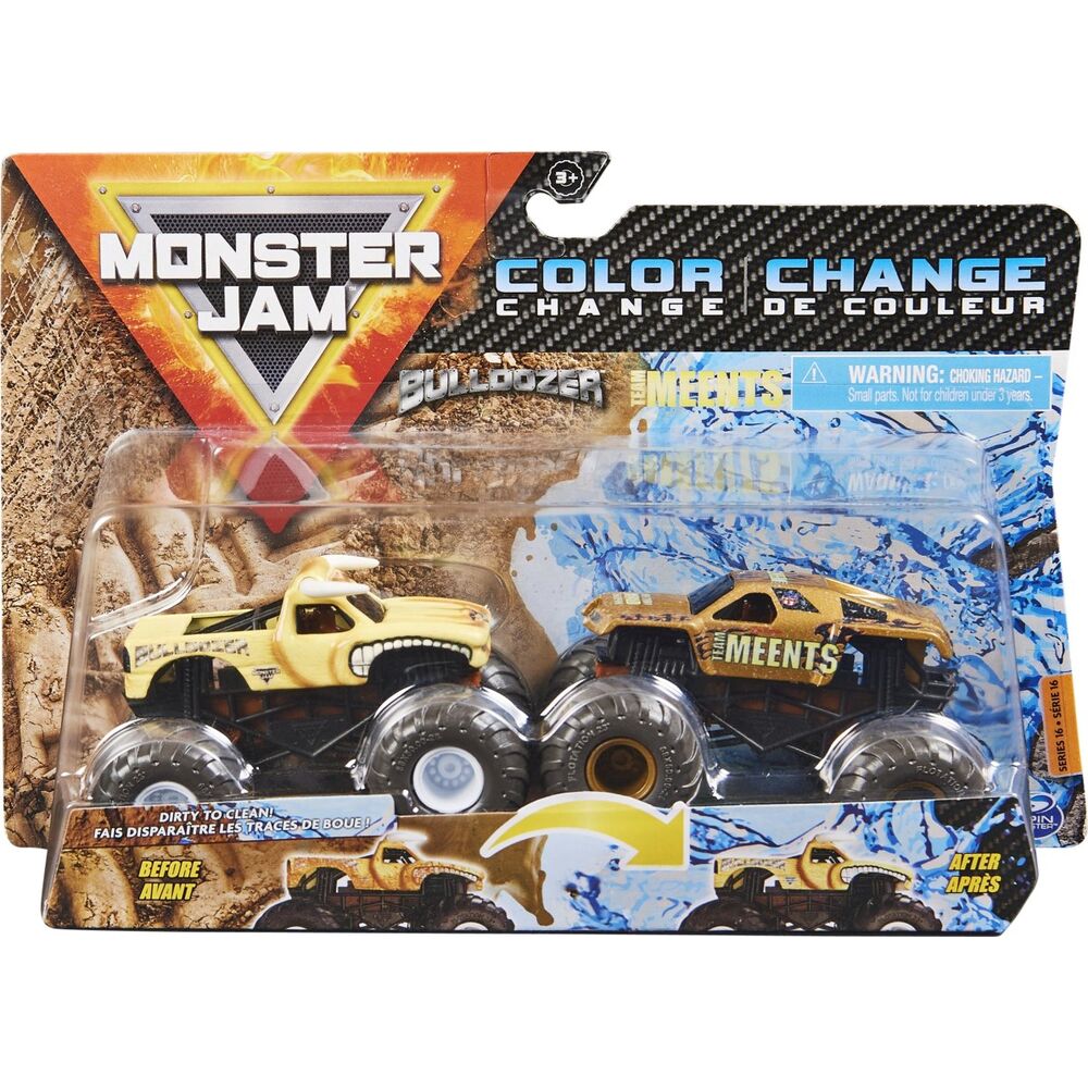 Grave Digger vs. Earth Shaker, Megalodon vs. Pirate's Curse ve daha fazlası gibi eğlenceli ve klasik eşleşmeler sunan Monster Jam 1:64 ölçekli Dirty to Clean 2'li Paketlerdeki kamyonlar harika ayrıntılara ve grafiklere sahip ve şimdi en sevdiğiniz Monster Jam kamyonları renk değiştirebilir! Kamyonunuzun rengini değiştirmek için ılık suya batırın ve kirin kaybolup temizlenmiş kamyonunuzu ortaya çıkarmasını izleyin! Ardından, kiri anında geri getirmek için soğuk suyla sıçrayın!