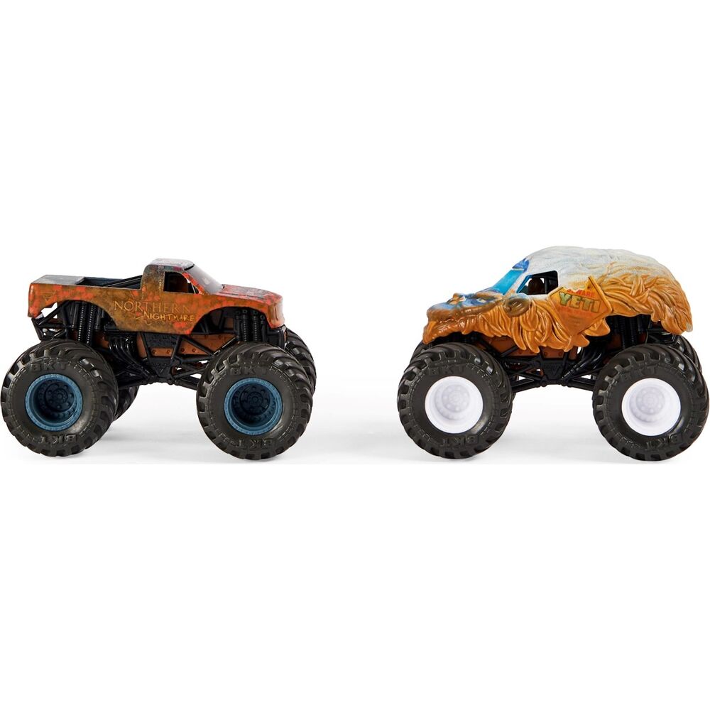 Resmi BKT lastikleri ve orijinal şasisi ile bu Monster Jam canavar kamyonlar, gerçek hayattaki benzerlerinin stilini ve havasını temsil ediyor! 2'li Pakete dahil olan her iki kamyonda da sürücü koltuğuna göre şekillendirilmiş bir sürücü bulunur.