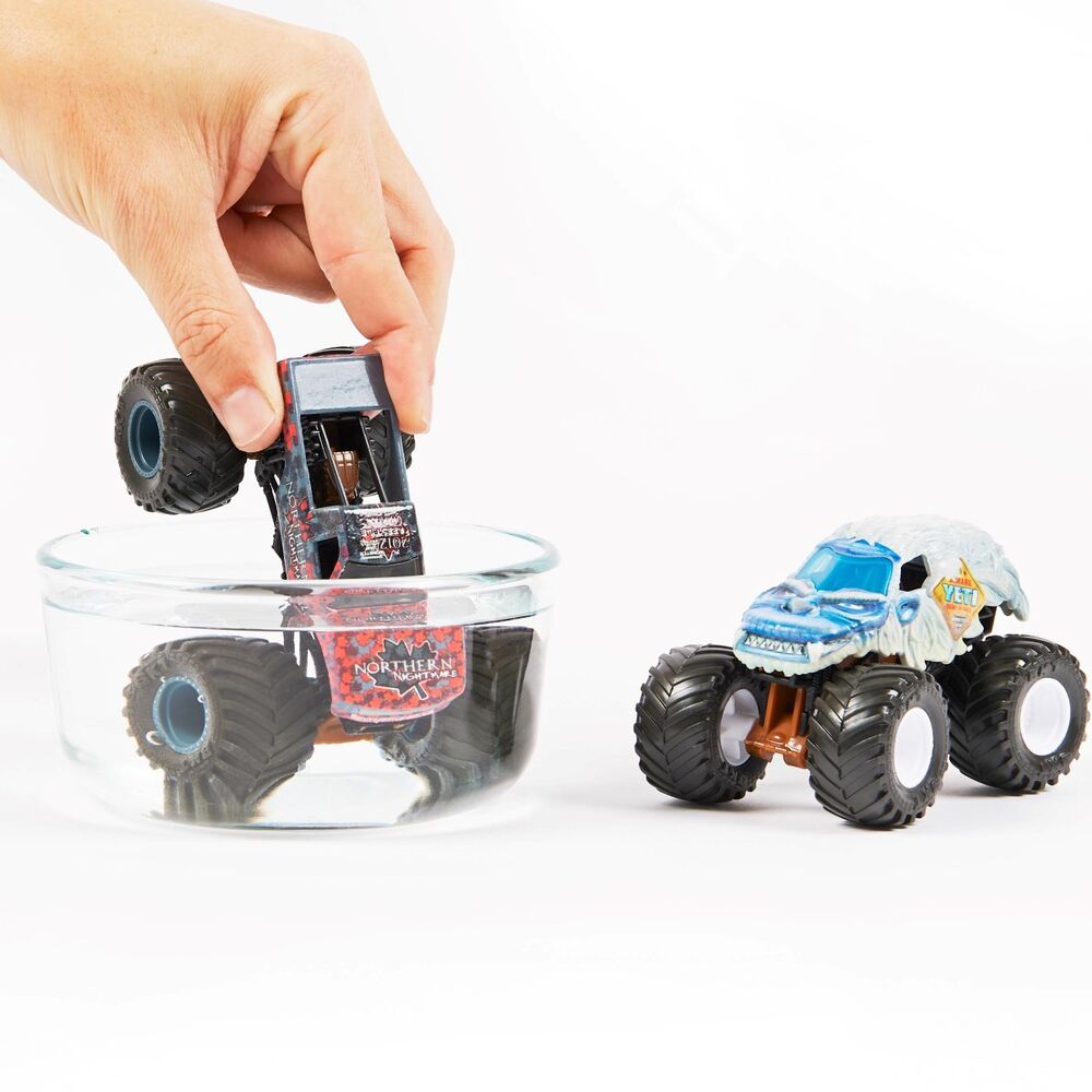 Resmi Monster Jam 1:64 ölçekli renk değiştiren döküm kamyonlarla kirliden temize geçin!