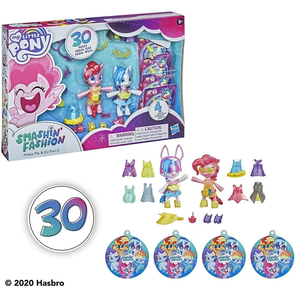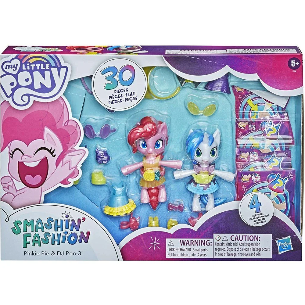 Pinkie Pie ve DJ Pon-3 figürleri elbiseler, ayakkabılar, güneş gözlükleri ve saç bantları gibi moda aksesuarlarıyla birlikte gelir. Heyecan verici bir keşif için Smashin 'Packs paketlerinin içinde 4 elbise saklanıyor!