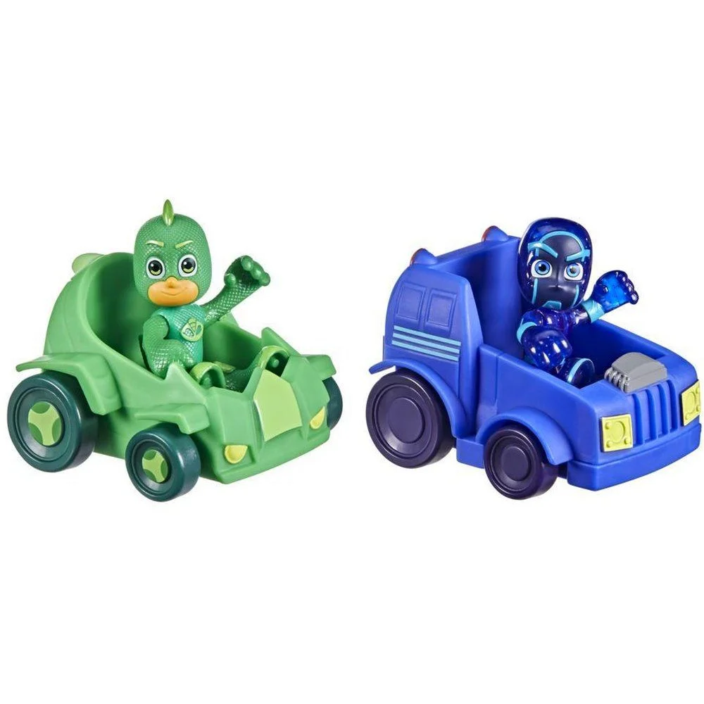 Pijamaskeliler Kertenkele ve Gece Ninjası yarışa hazır! 2 mini Pijamaskeliler aracıyla 2 Pijamaskeliler figürünün yer aldığı bu muhteşem araç ve figür setiyle çocuklar, Kertenkele ve Gece Ninjası’nı kendi araçlarında birbirleriyle yarıştırabilecek.