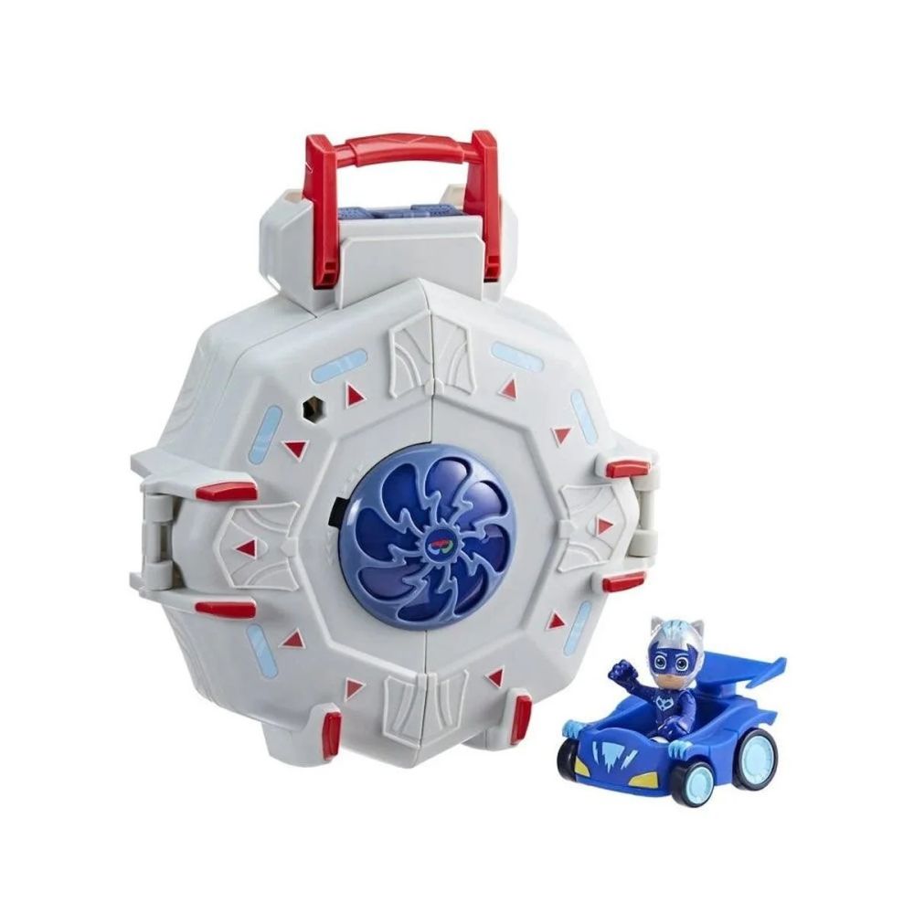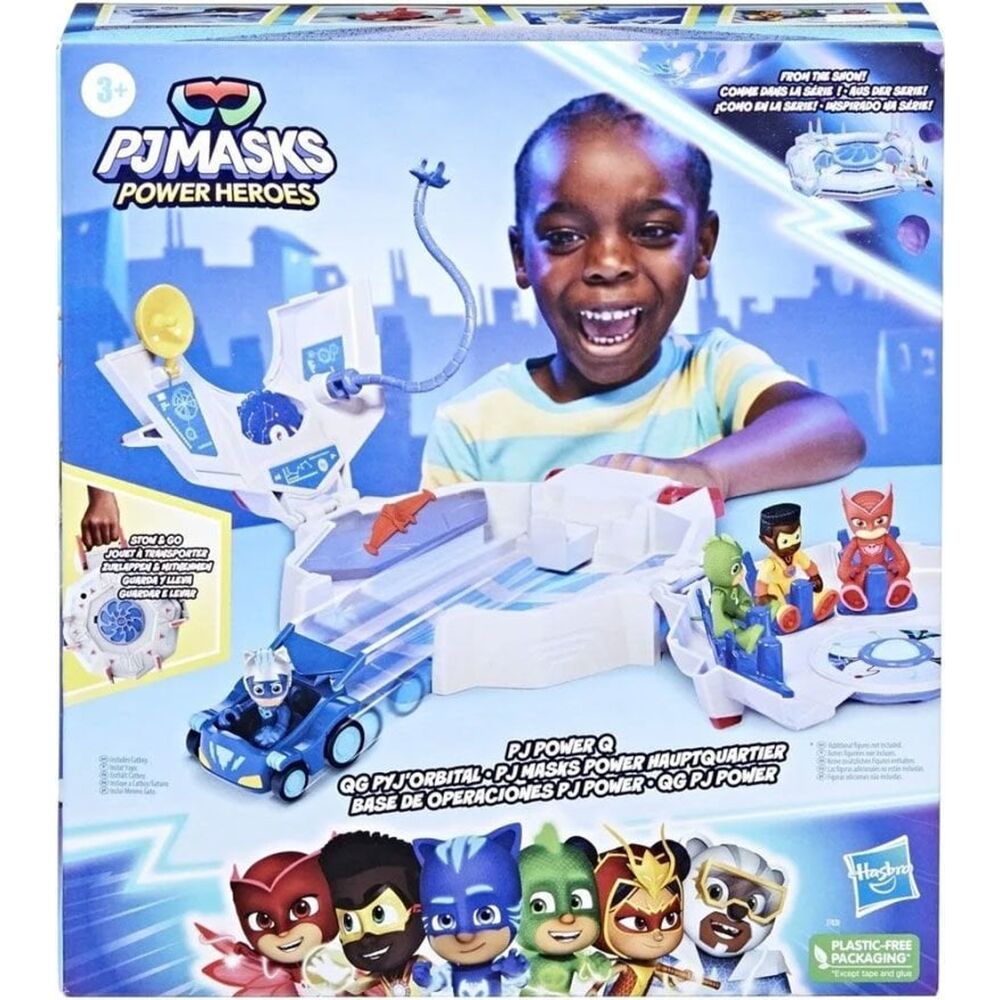 Bu Pijamaskeliler oyun seti, Power Heroes'un görev kontrolünü (Pijamaskeliler aksiyon figürlerine uyan 4 koltukla birlikte), bir gökyüzü tarama uzay gemisi ve bir araba fırlatıcıyı ortaya çıkarmak için açılır!